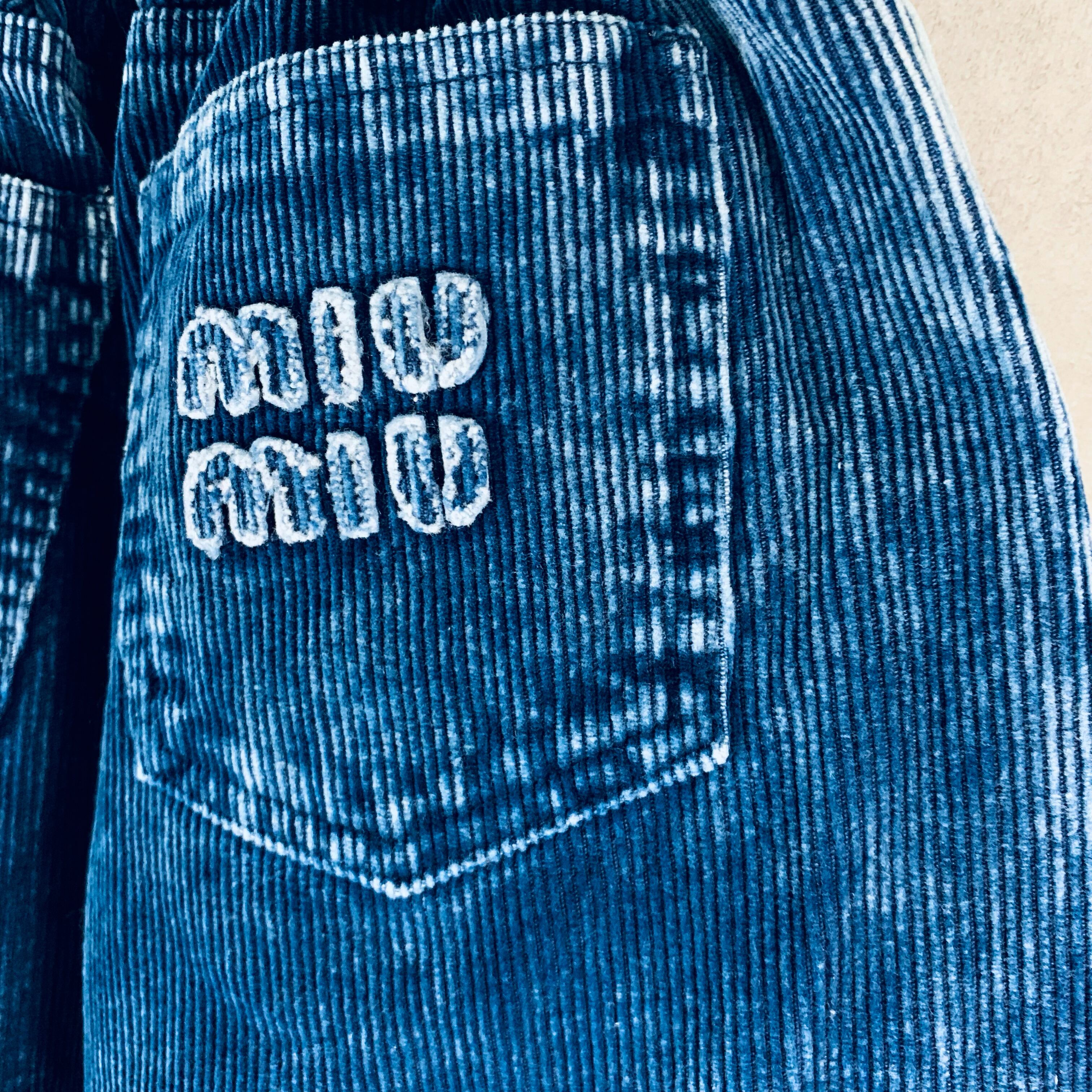 ミュウミュウ ウォッシュドコーデュロイ パンツ インディゴブルー